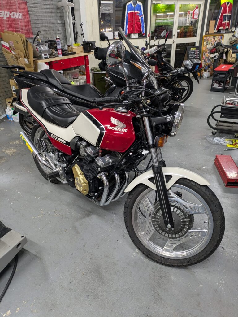 めちゃくちゃキレイなCBX400Fの修理依頼!!2年以上乗っておらずこの度久しぶりに乗りたいので!って事でお預かりしました。これだけキレイなCBX400Fは久々に見ました!!でもやはり2年動かしてないだけあって不動。とりあえずキャブレターとバッテリーらへんから修理していきます!!